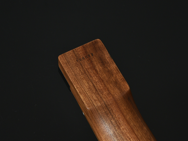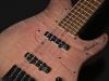フレイムメイプルトップ・アッシュバックの木目をピンクとチャコールの絶妙なカラーリングで仕上げた商談会限定モデル。オバンコールネックは飛鳥ファクトリーでも珍しい仕様。