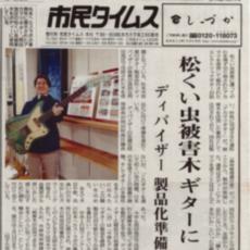 松くい虫の被害にあった赤松を使用して制作したギターが新聞に掲載されました◎