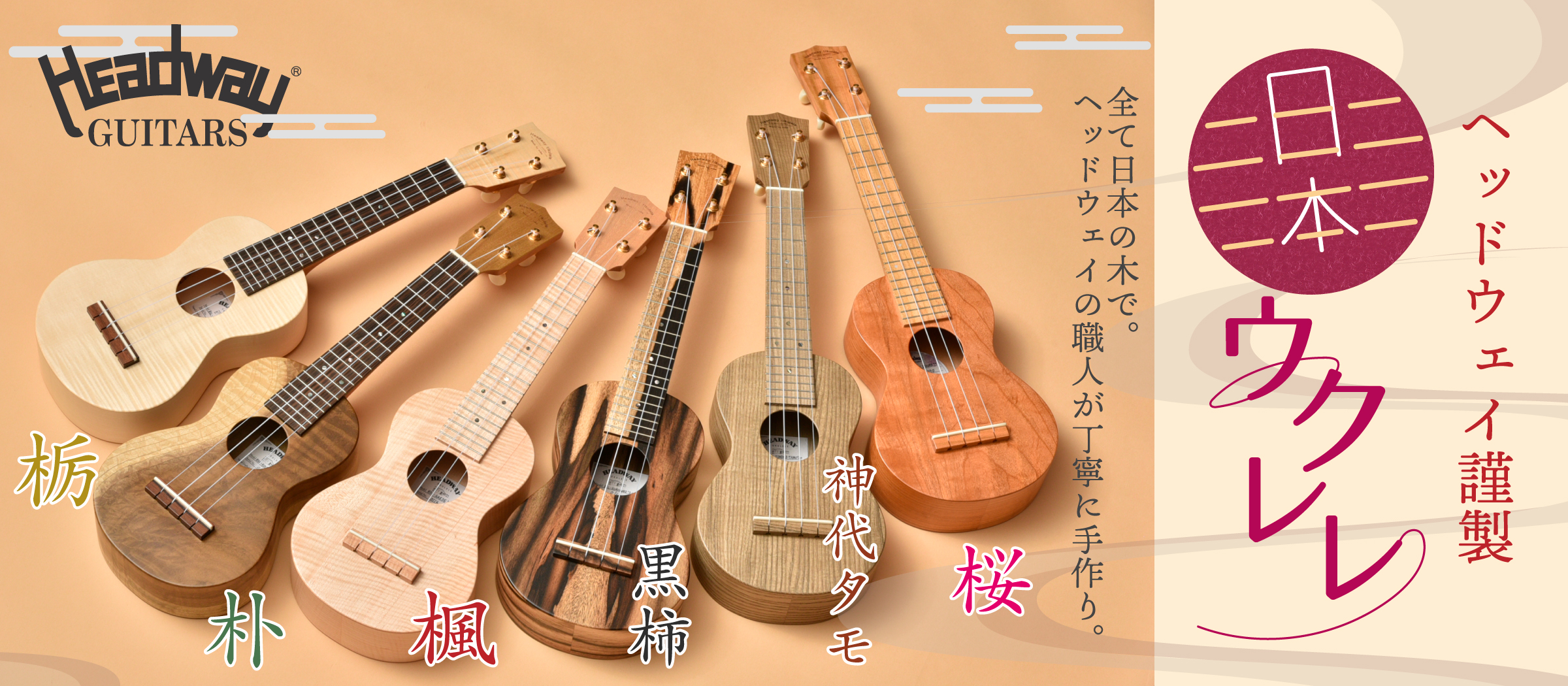 長野県松本市にアコースティックギターの工場として生まれ40年以上の歴史を積み重ねてきたヘッドウェイの職人が日本の木を使って、その魅力を存分に引き出した「日本のウクレレ」。ぜひ手にとってその魅力をお確かめください