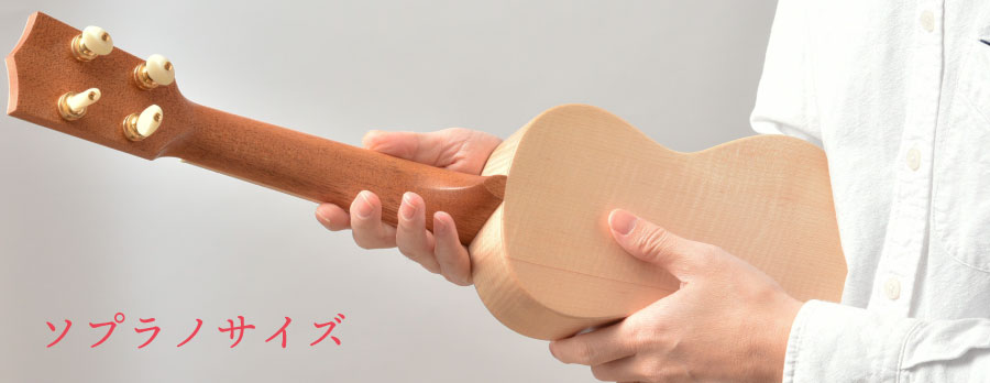 ウクレレらしさを存分に味わえるソプラノサイズで作りました。カラカラ、コロコロとしたサウンドはコードストロークでも心地よく響きますし、単音で弾いたときのサスティンも味わい深く広がります。