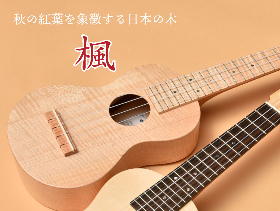 ムクロジ科カエデ属の落葉高木です。日本では秋に紅葉した楓の葉っぱのイメージがあるように、桜と同様に私たちに季節を感じさせる木です。木材としての価値も非常に高く、楽器の他に建築材や各種木工品にも頻繁に使われてきました。その魅力は白い木肌と稀に出てくる杢(もく)です。目の細かい杢は「フレイム杢」などと呼ばれて、高級楽器を始め、高級家具や調度品にも重用されています。