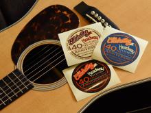 指板やブリッジ、天神にはパープルハート材を使用。ピックガードにもパープルハートを使用し、ワンポイントのインレイを施しています。サウンドホールラベルもオリジナルデザインを採用し限定モデルにふさわしい華やかな印象となりました。ヘッド裏には「40th Anniversary」ロゴを刻印しています。
