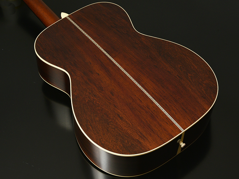 ボディのサイド・バックには職人が選び抜いたマダガスカル・ローズウッドを使用しました。そのサウンドと希少性で既に材料として枯渇してしまったブラジリアンローズウッド(ハカランダ)と比較して、ローズウッドの中でも特性が近いとされるのがこのマダガスカルローズウッドです。密度の高い材はブラジリアンローズウッドと比較しても遜色ない鮮やかな高音域が特徴。とはいえこのマダガスカルローズウッドも現在は流通量が極端に減少しており、その中で良質な木質を持つものは極めて稀になってしまいました。
