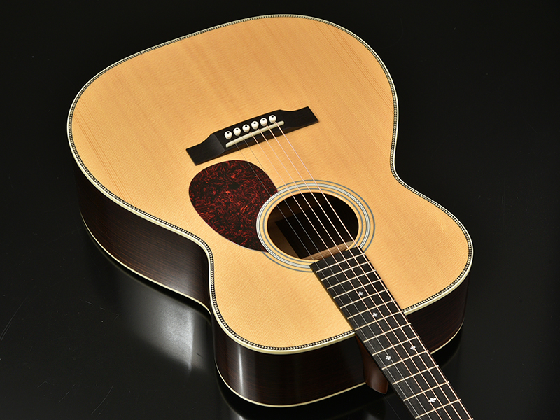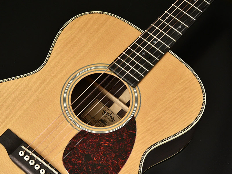 基本となるボディの形状はHFと同様くびれの深いアウトライン。そこへ645mmスケールでネックを組むHOMシェイプを採用しました。深胴ボディを採用し、抱えやすいながらもストロークしたときの鳴りの深さ、豊かな低音が魅力です。