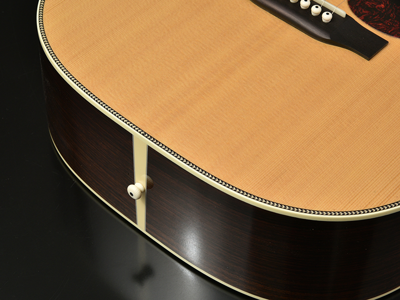 ブレイシングにはARS(アドバンスドリアシフト)ブレイシングを採用。ノーマルの位置から若干ブリッジ側に寄せたレイアウトであり、1音1音しっかりと鳴り響き、芯のある迫力のサウンドを実現。また、位置をブリッジ側へ寄せることでトップ材に対しての丈夫さも増しています。