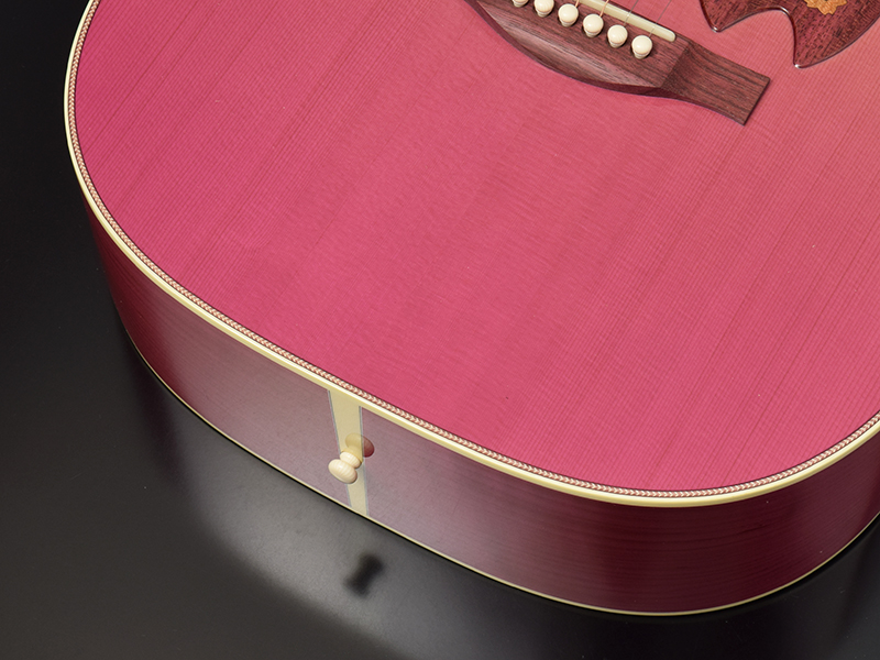 サウンドホールラベルには、桜の形をしたオリジナルデザインを採用。ボディカラーとマッチした淡い紫色を採用しています。