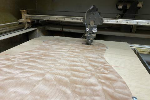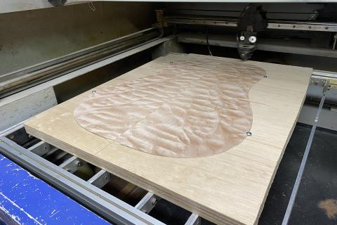 そのキルトメイプルに、レーザーを使って模様を入れていきます!