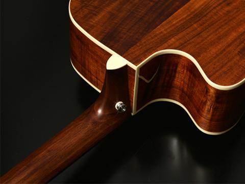 この加工はヘッドウェイの上位機種「カスタムショップ」「飛鳥チームビルドシリーズ」でも採用されている手法。近年ではより簡単なボルトを使用したジョイント方法などもありますが、ヘッドウェイで採用しているアリミゾ加工は接合面積も広く、高精度に仕上げればネックとボディはあたかも一つの木材であるかのように豊かな鳴りを生み出します。
