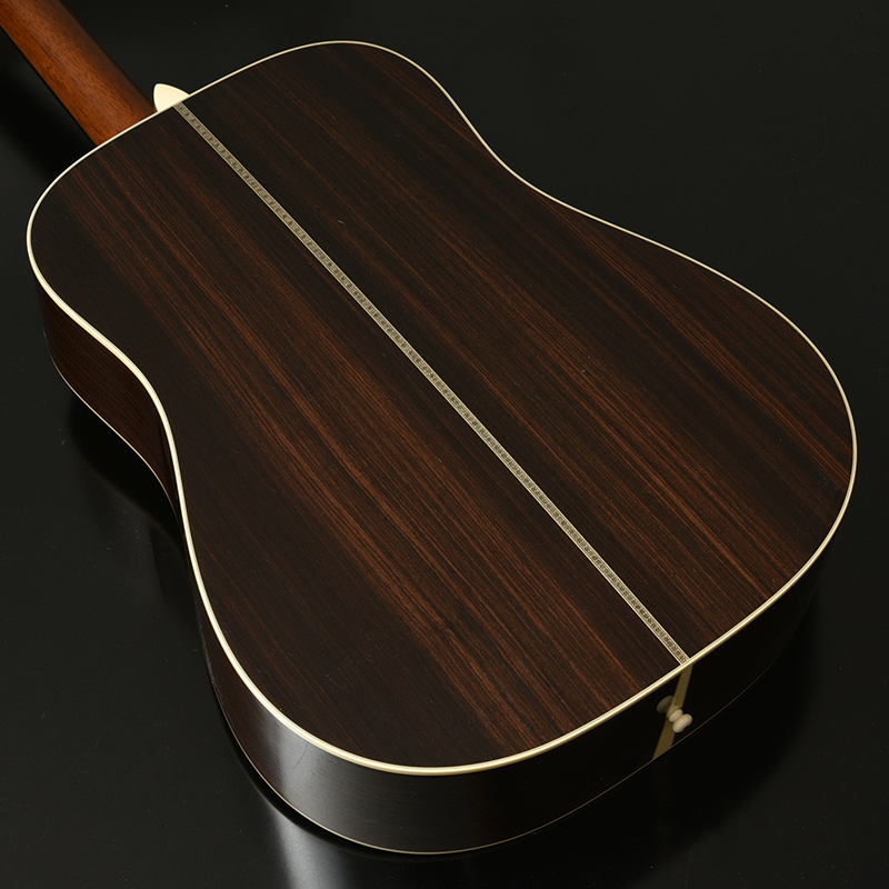 シトカスプルースにインディアンローズウッドの王道中の王道のトーンウッドを組み合わせた。豊富なストックの中から百瀬の熟練の目が最上級のセットを選定している。HD-115初期のデザインに準じてやや小柄なヘリンボーンの装飾を施した。