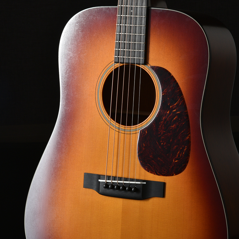 ビンテージギターを参考としたオールラッカー・レリック仕上げのサンバーストフィニッシュを施しました。細部まで手を加え、長年使い込んだギターのような風格を持たせています。最高級5Aアディロンダックスプルースとビンテージホンジュラスマホガニーボディーにアディロンダックスプルースのセミフォワードブレーシングを合わせました。豊かな低音のレスポンスを持ちながら音の芯もあるバランスの取れたサウンドでビンテージマホガニーの甘いマホガニートーンをお楽しみいただけます。カーボンバーによる補強を施したハイストレングスネックはトラスロッドと弦の張力がネックに与えるストレスの影響を低減し、より自然な弦振動をボディーへ伝えます。こちらのモデルは44.5mmのナット幅でフィンガーピッカーにもおすすめです。