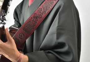 There are many Japanese phrases that involve flowers such as “The cherry blossoms scatter” or “The camellia falls” and among them, the phrase “In fact, the hydrangea almost never withers” is a phrase that inspired me this time. The calyx of the hydrangea, which survives throughout the winters, it turns brown and cloudy but retains its beautiful shape. People try to resist the signs of age, with makeup, training, and so on. That kind of effort in itself is as beautiful as a hydrangea. The beauty of the strap, which holds the guitar's playing posture, draws its beauty from this concept.