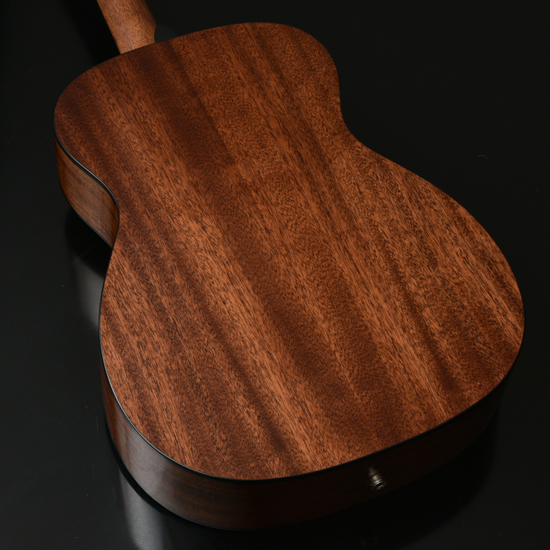 ボディトップはスプルース単板、ボディサイドバックはサペリマホガニー単板となっております。オール単板であるため、合板のギターと比べて木材の振動が豊かになり、より本格的なアコーステックサウンドを楽しめます。