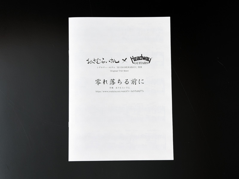 おさむらいさんのオリジナルアルバム『君の影を奪う』に収録された楽曲「零れ落ちる前に」の特製TAB譜が付属いたします。おさむらいさん本人による楽曲の解説・弾き方のアドバイスが含まれています。