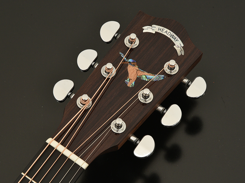 フィンガースタイルギタリストわたなべゆうが監修し、Headway JTシリーズからリリースされる特別モデルが発売となりました。さまざまなボディシェイプやトーンウッドの組み合わせを試し、その中でわたなべゆうの得意とする演奏スタイルである温もりと透明感を併せ持つフィンガースタイルに最もフィットする仕様を選択しました。デザイン面では往年の愛機であるHeadway HDC-1020 "King Fisher"のデザインを落とし込みユニークなインレイデザインで指板やヘッドを装飾しています。