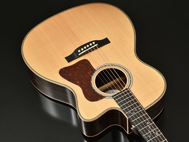 フィンガースタイルにフィットするカッタウェイ付きのHOCシェイプを採用。ハイフレットも弾きやすい仕様に仕上がりました。