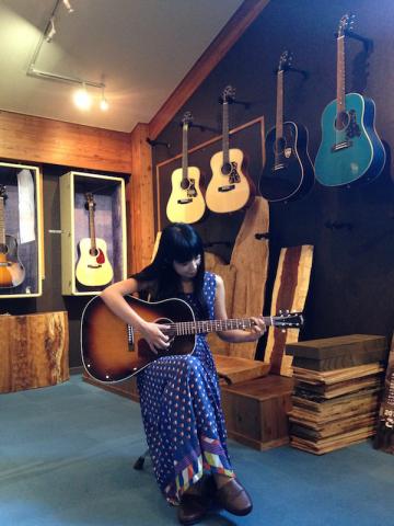 湯澤かよこさんはこれからアコースティックギターを始めたいということでショールームにあるヘッドウェイを色々と試奏しながら色々なお話しを聞かせていただきました。