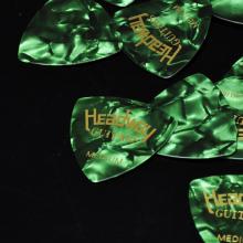 HEADWAYアクセサリーにセルロース素材のピックが新登場しました。形はオニギリ型、厚みはMEDIUMにて製作いたしました。ゴージャスな印象を与えるグリーンパールにHEADWAYの金色ロゴが目を引く個性的なピックに仕上がりました。広く普及しているセルロース素材のピックで、手に馴染みやすく、軽快なコードストロークに最適のピックです。