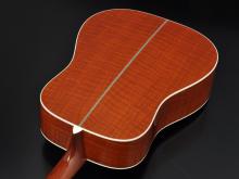 レッドオークをボディのサイド・バックに使用した特別モデルを制作しました。もともとのレッドオークの木理と交差する様に杢が入り、複雑な模様が浮かびます。今回のモデルの様に杢が浮かぶものは超希少。外観の面では最高級の板と言って差し支えありません。
