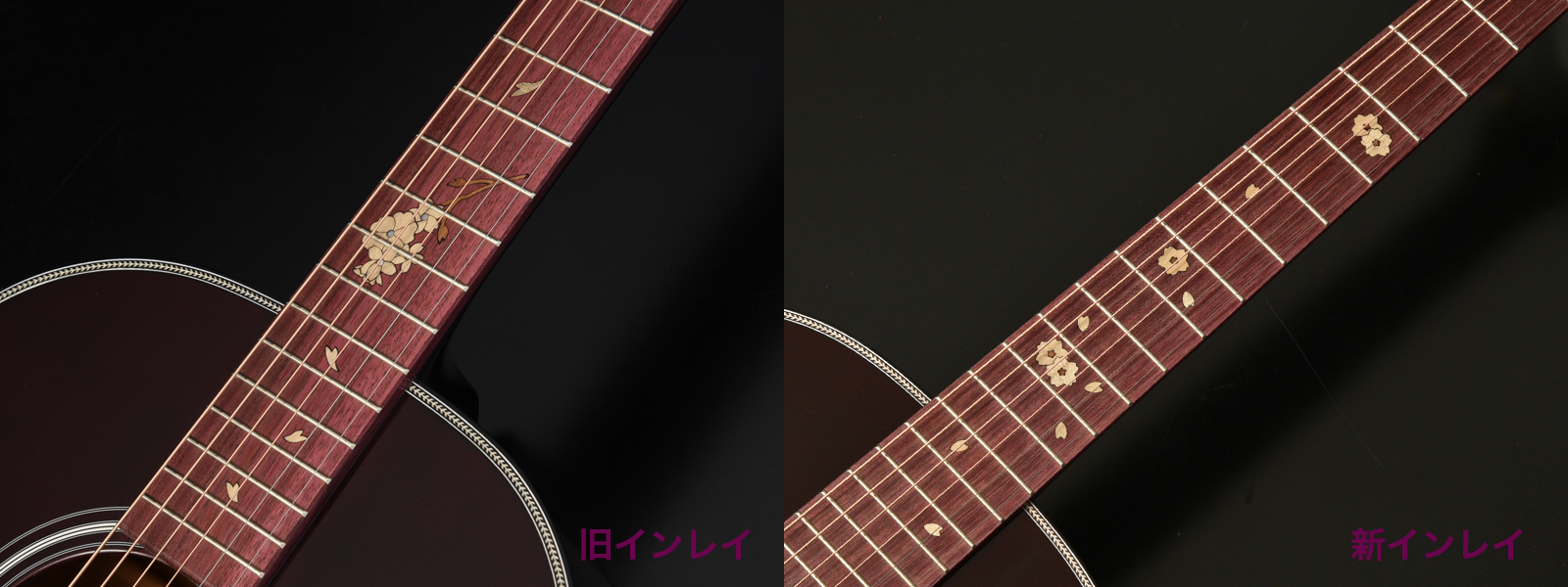 以前製作を行ったHJ-Yozakura/STDのインレイデザインを一新したモデル。インレイの素材に桜材を使用することはそのままに、より可愛らしい桜をデザイン。ブレイシングはフォワードシフトを採用し、弾き初めから十分な鳴りをお楽しみ頂けます。