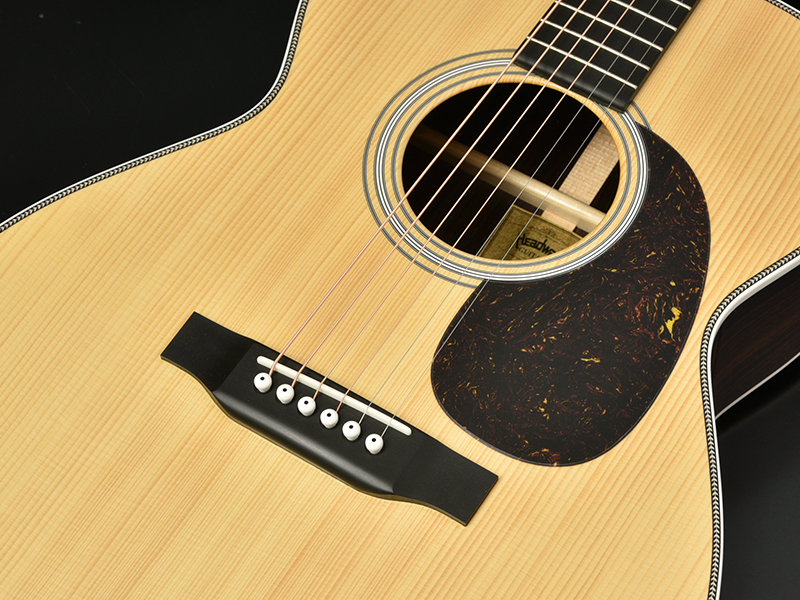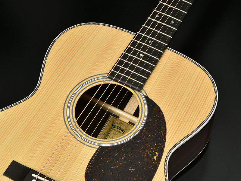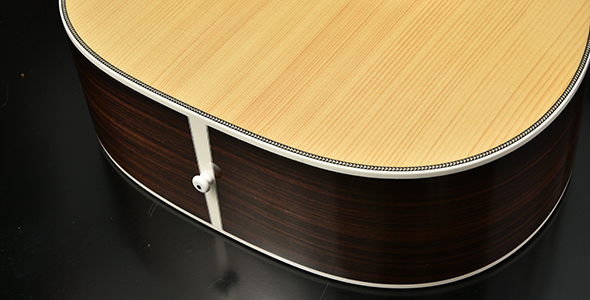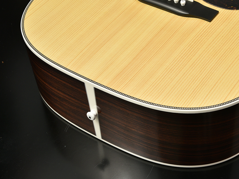 ブレイシングには、ARS(アドバンスドリアシフト)ブレイシングを採用。ノーマルの位置から若干ブリッジ側に寄せたレイアウトです。1音1音しっかりと鳴り響き、芯のある迫力のサウンドを実現。また、位置をブリッジ側へ寄せることでトップ材に対しての丈夫さも増し、永くご使用頂ける安心のモデルに仕上がります。