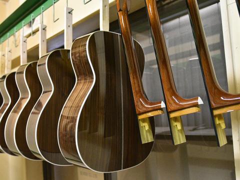 ボディとネックはそれぞれ別々に塗装された後、伝統的な蟻溝(ありみぞ)工法によってジョイントされます。ジョイント部はそのギターが如何に高精度に作られているかが最も良く解る箇所であり、高精度な組込みを約束します。