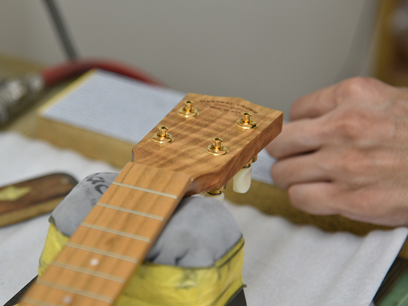 細部まで気の行き届いたものづくりで、「安心して長く使える」頑丈なギターとしても定評のあるヘッドウェイですが、その姿勢はウクレレ作りでもそのままです。細かいところまで丁寧に作りながら、ウクレレらしい良い意味でのゆとりも残し、全体的にシンプルかつ高級感ある雰囲気に仕上げました。