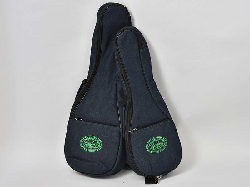 付属のギグバッグはデニム地にグリーンのヘッドウェイロゴが爽やかな印象。表側に小物入れスペースを確保し、チューナーなどちょっとしたアクセサリーを難なく収納できます。