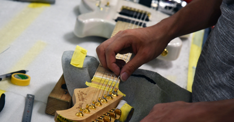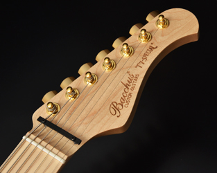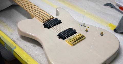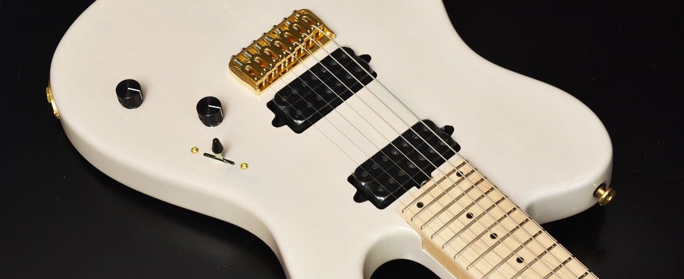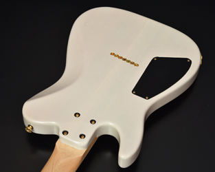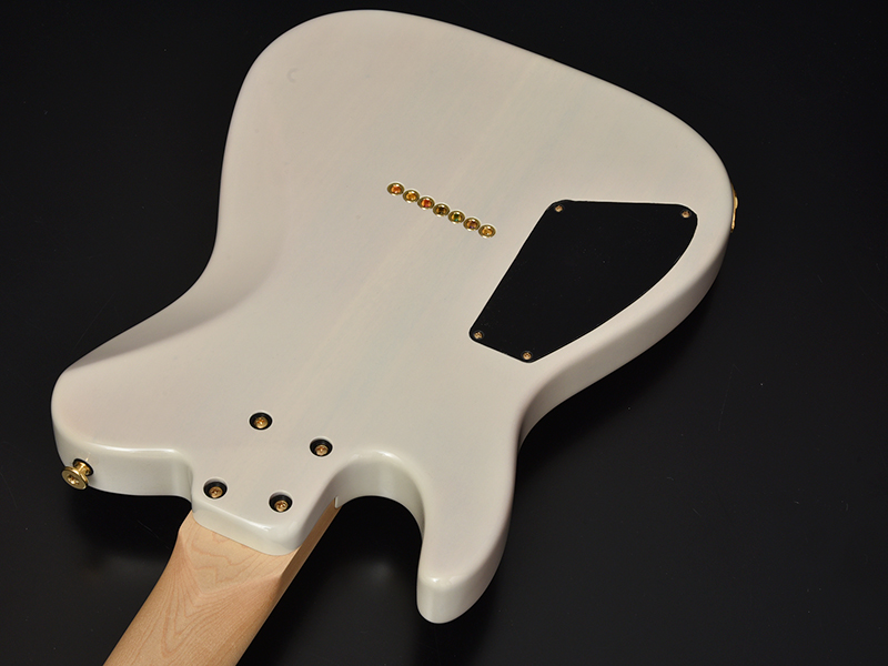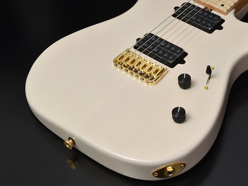 ブリッジにはレギュラー製品では使用されることが少ないHipshotを搭載。ゴールドパーツとホワイトブロンドカラーの組み合わせが高級感のある外観に仕上がりました。