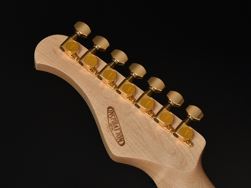 ピックアップにはアメリカのノースカロライナ州のハンドワイアリングピックアップブランド、MOJOTONE社製の"PW Hornet 7strings" Humbucker Pickupを搭載。素朴なクリーントーン、ヘビーなリードトーン、厚みのあるコードトーン、など幅広い音色を生み出しながらも、低音はぼやけることなくタイトであり、高音も耳障りでなく、バランスが取れています。高出力ながらも、コイルタップしたときにはピッキングのニュアンスを正確に再現する明瞭なトーンを実現しました。