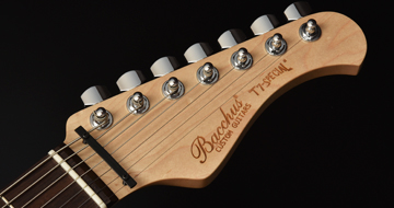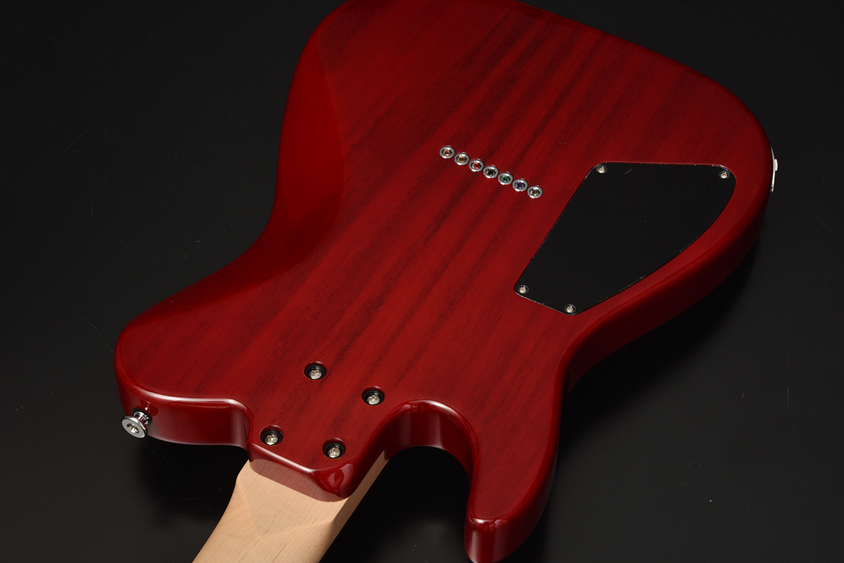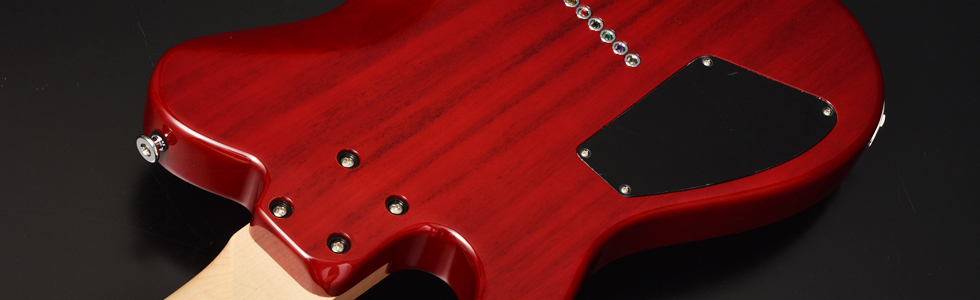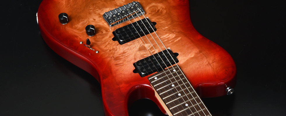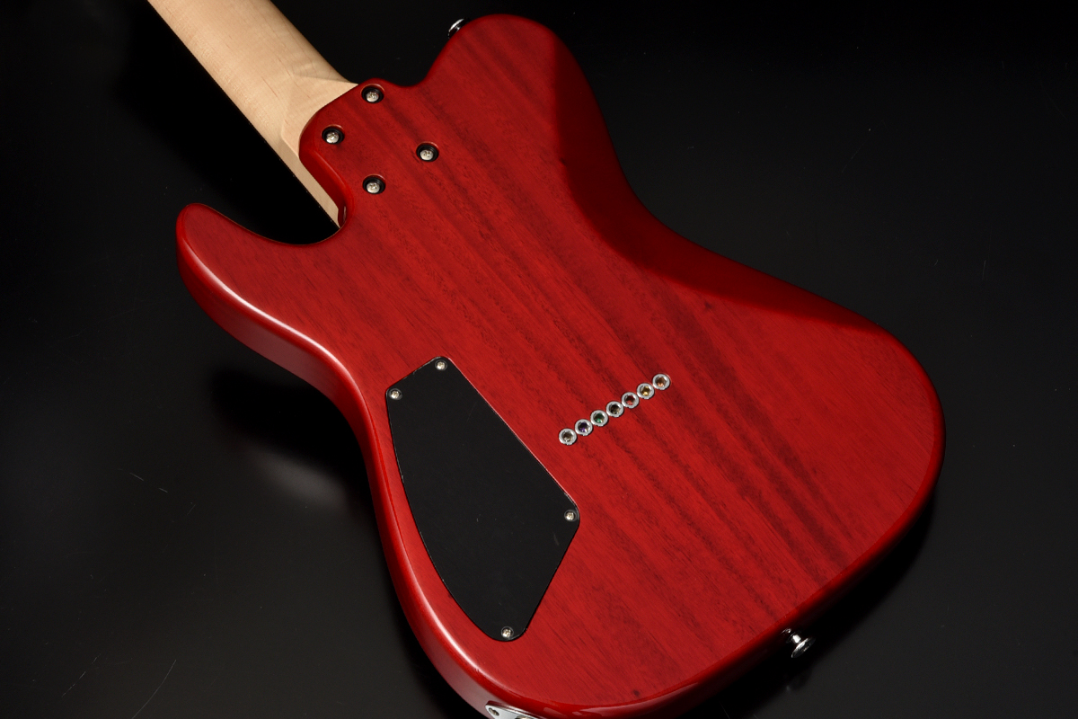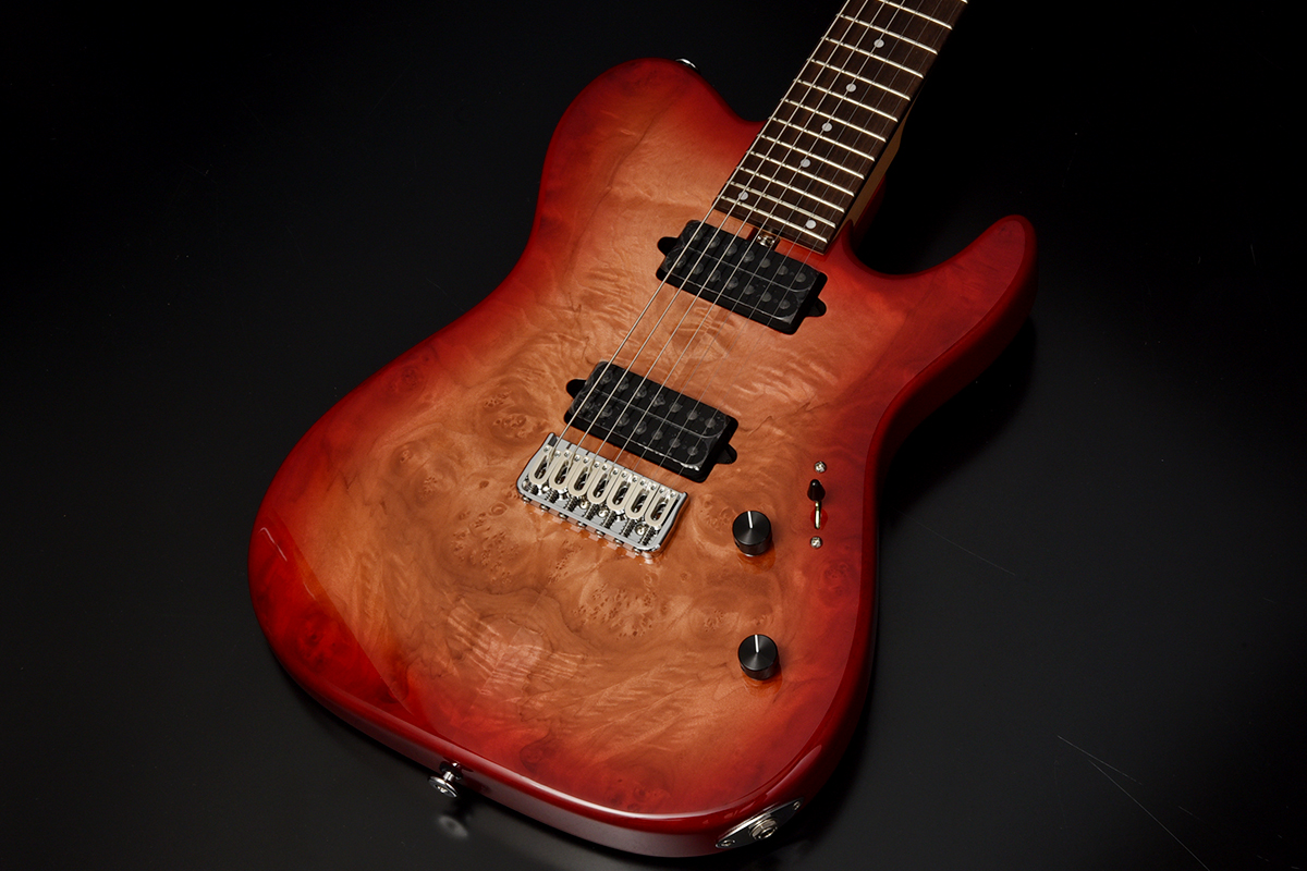 ブリッジにはレギュラー製品では使用されることが少ないHipshotを搭載。ボディトップはバールメイプルを採用。美しい杢目を活かすためにレッドバーストカラーで仕上げました。