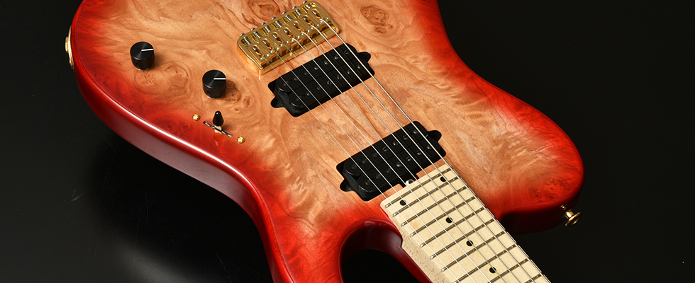 ピックアップにはアメリカのノースカロライナ州のハンドワイアリングピックアップブランド、MOJOTONE社製の"PW Hornet 7strings" Humbucker Pickupを搭載。素朴なクリーントーン、ヘビーなリードトーン、厚みのあるコードトーン、など幅広い音色を生み出しながらも、低音はぼやけることなくタイトであり、高音も耳障りでなく、バランスが取れています。高出力ながらも、コイルタップしたときにはピッキングのニュアンスを正確に再現する明瞭なトーンを実現しました。