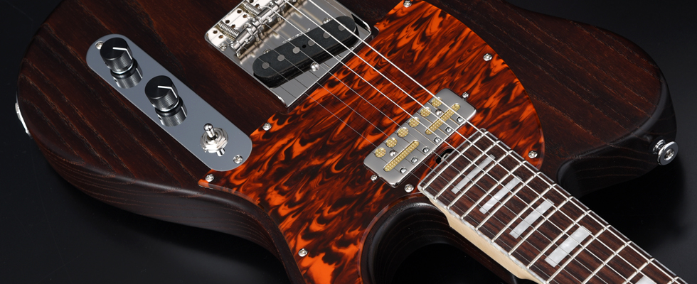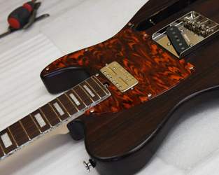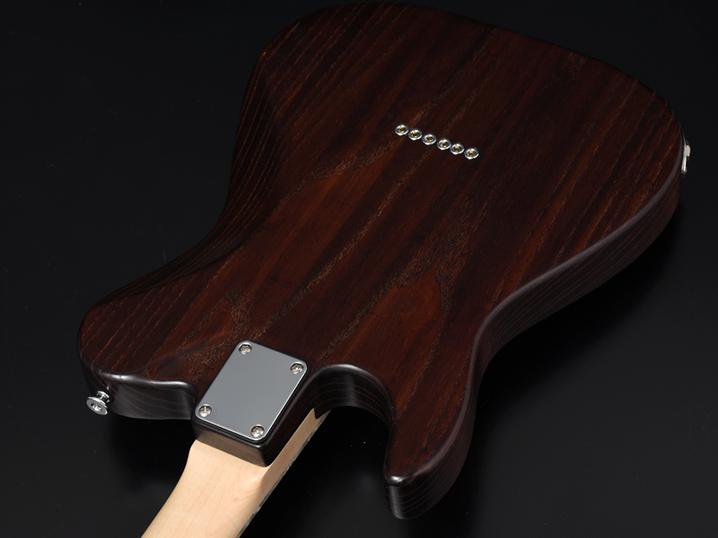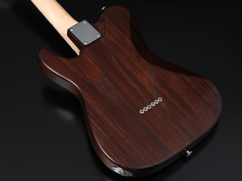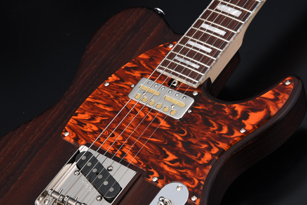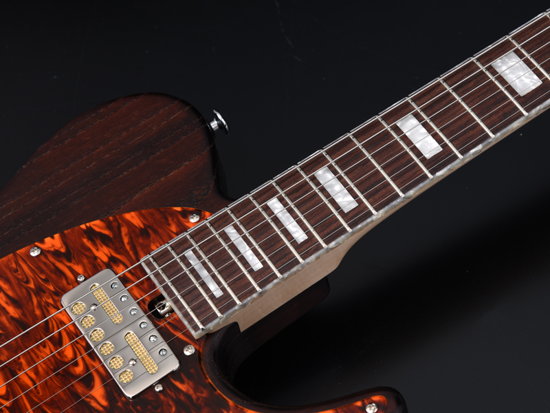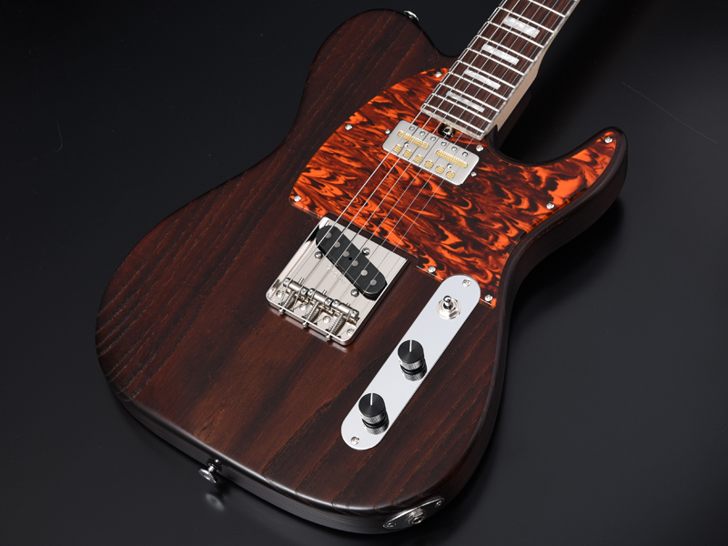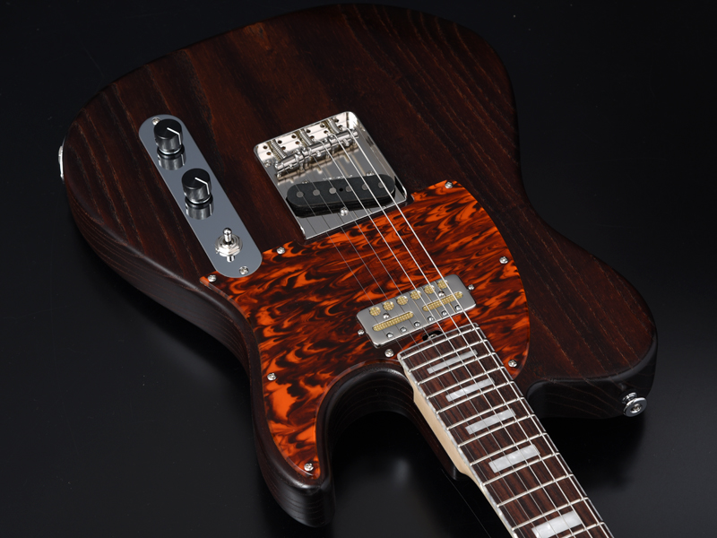 アッシュボディの木目を活かしたオイルフィニッシュ塗装、1プライのべっ甲柄ピックガードで統一し高級感のある1本に仕上がりました。