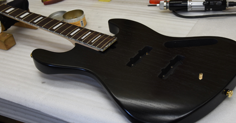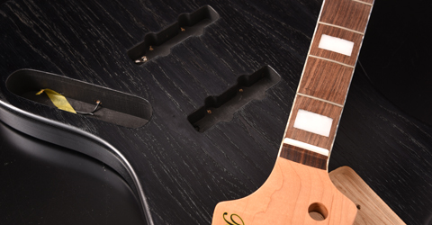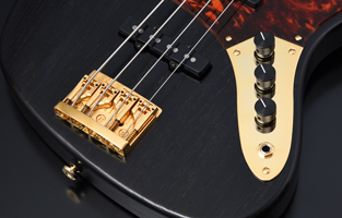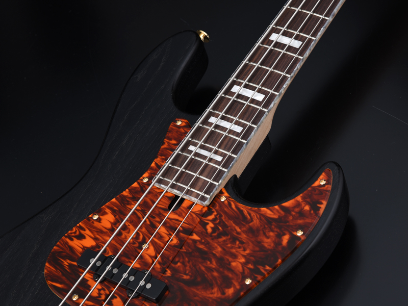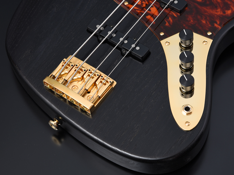 ブリッジにはシャーラーのローラーサドルを搭載したBass Bridge 3D-4を使用。ローラーサドルにより弦の接点部分の負荷を軽減させる他、ピッチやチューニングの安定性が向上しています。ピックアップにはリンディ・フレーリンのJB setを搭載しました。アッシュボディとの相性もよく、音抜けの良い、芯のあるサウンドを出力します。