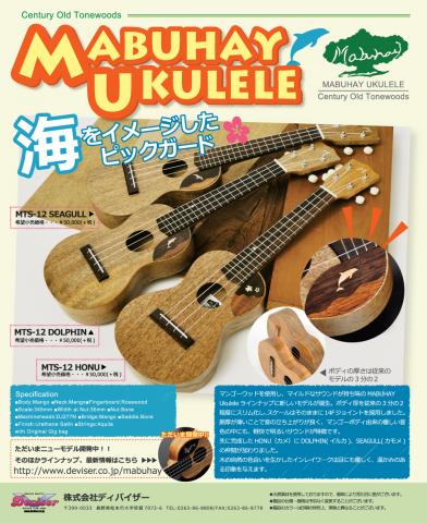 発売されたばかりのシンコーミュージック刊「ウクレレアラモード3」にMABUHAYウクレレ最新モデル「MTS-12DOLPHIN」が掲載されております!
