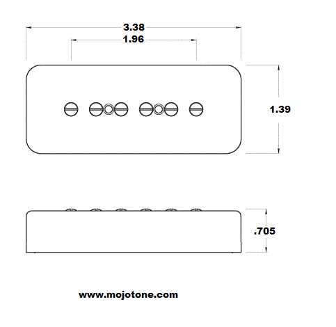 50年代のヴィンテージP-90はそのダイナミックで太く明快な音と質が際立っていた。ただ一つ問題だったのは60Hzのハムノイズであり、これは現代のプレイヤーにとっては時に容認出来ないものである。Mojotoneの特許である’56 Quiet Coil ハムノイズキャンセリングP90は1956年のP-90の長所の全てを一切の妥協も無く実現する。モジョトーンのアプローチは至って単純でハムノイズの無い本物のP-90の音を再現すること。‘56 “Quiet Coil™” P-90は56年頃の P-90のように42ゲージコイル、低ガウスのアルニコマグネット、アジャスタブルポールピース、ヴィンテージスタイルのブレイデッドワイヤーなど、当時実際に使われた部品と素材のみで作られている。