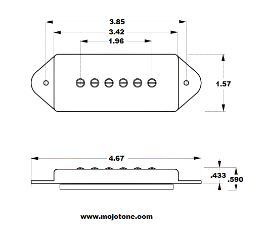 ブリッジ専用のP-90Hot Rodはアルニコ5を使い、粒が粗めでサスティーンのある音色を持つ。ビンテージタイプの歪みを指向するセッティングにおすすめ。厚い低音とまろやかな高音域をもち、豊かで太い音を出力する。ClassicタイプかCloneタイプのピックアップをネック側に持ってくるコンビネーションがおすすめ。