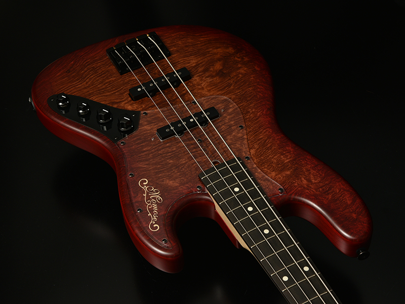 Aguilar OBP-2TK:Aguilar OBP-2TKプリアンプを搭載したアクティブ仕様で、より重厚な音作りも可能です。ボディトップには希少価値の高いエキゾチックウッドを採用し、バック材にはアッシュ1Pを贅沢に使用。特別モデルに相応しい1本に仕上がりました。