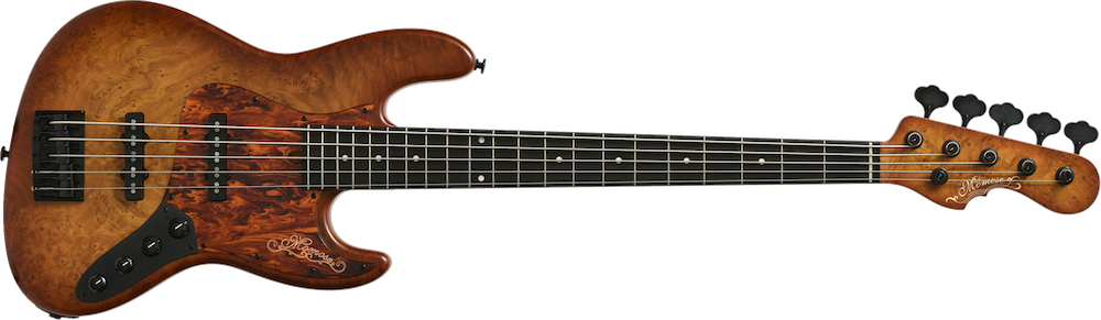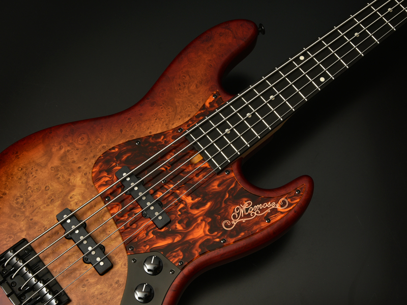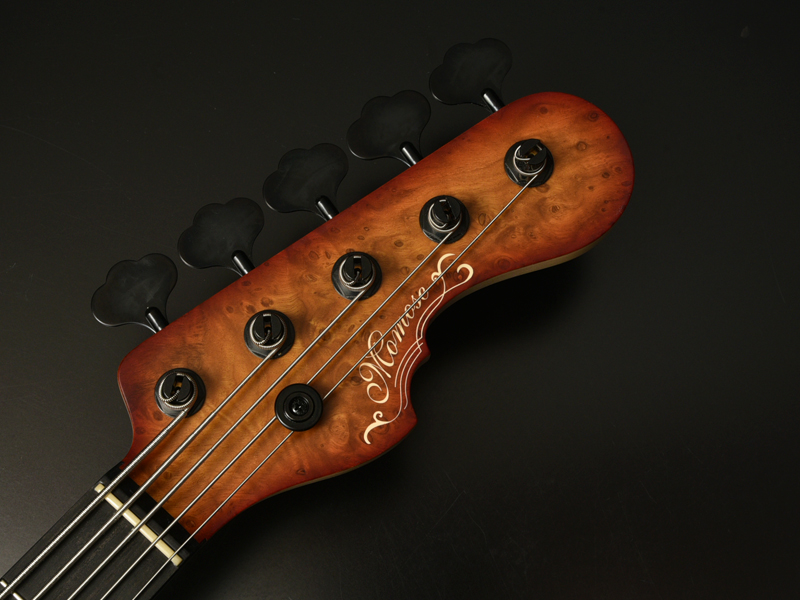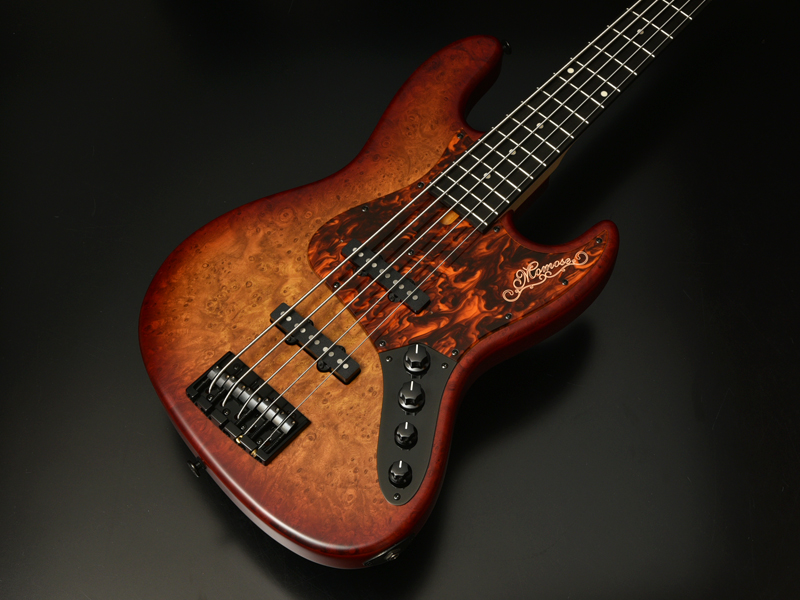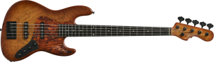 ボディトップにチェスナットバールを使用したエキゾチックウッドカスタムのアクティヴベース。