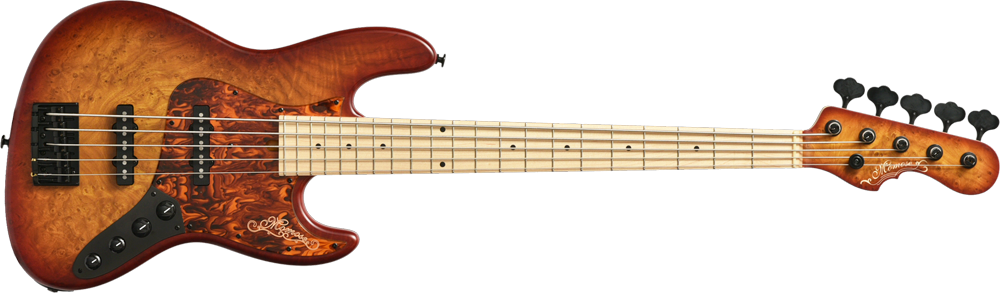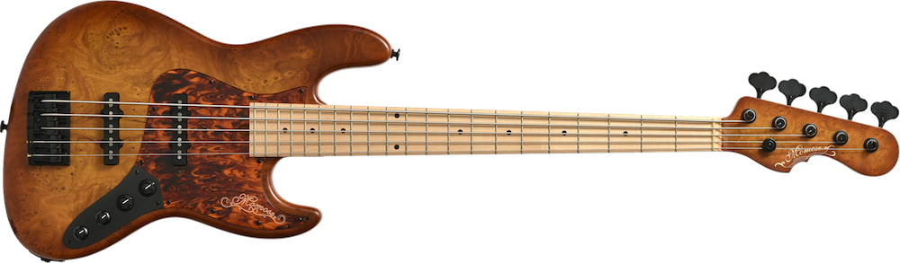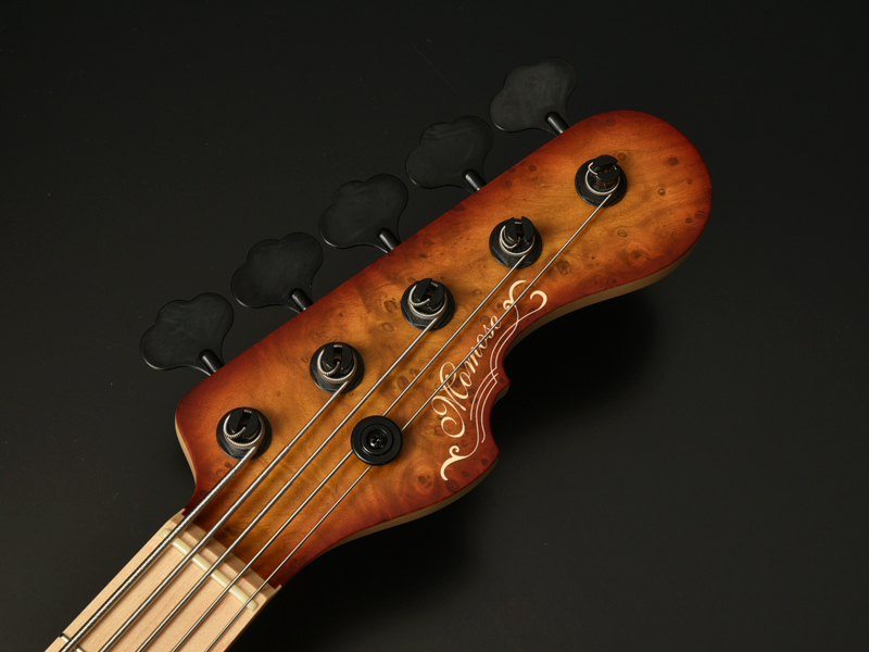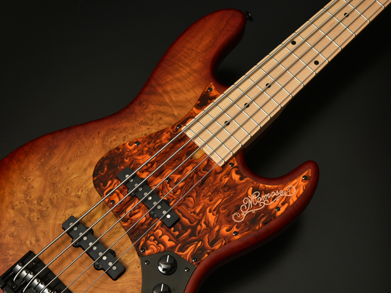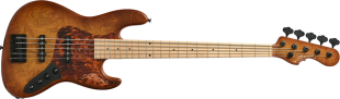 ボディトップにチェスナットバールを使用したエキゾチックウッドカスタムのアクティヴベース。