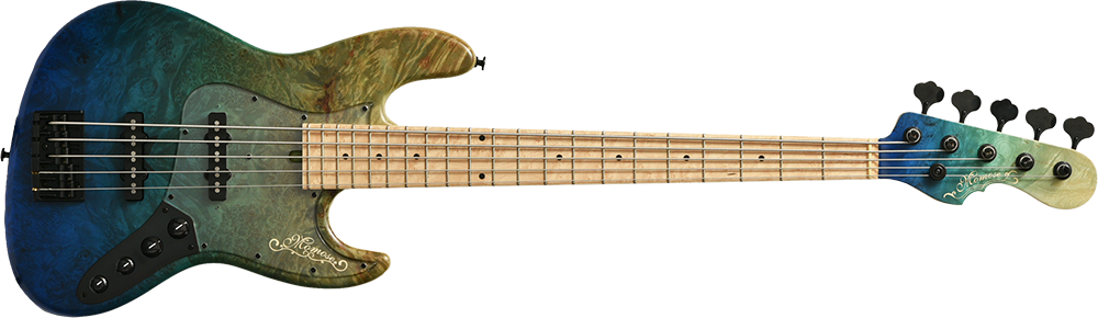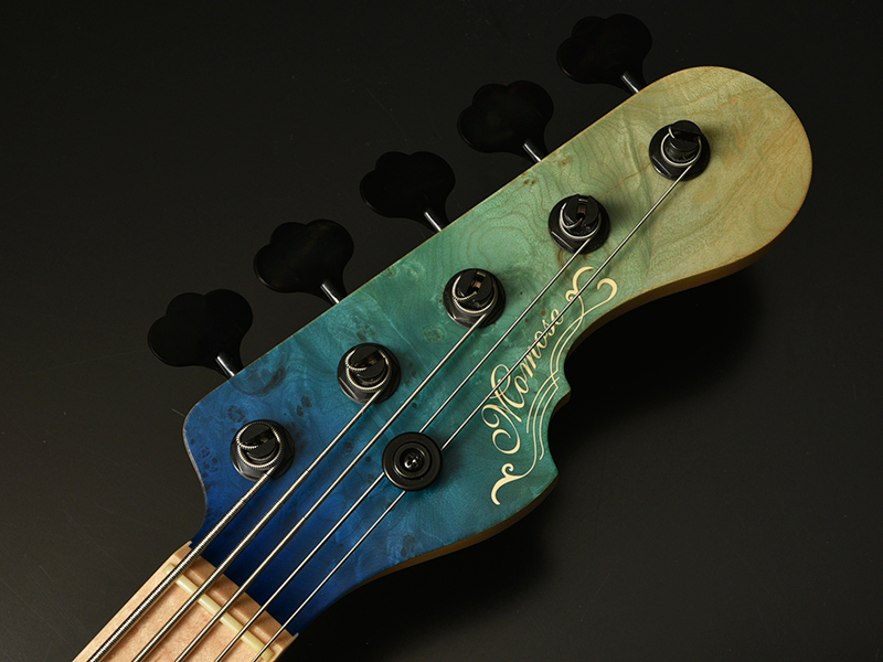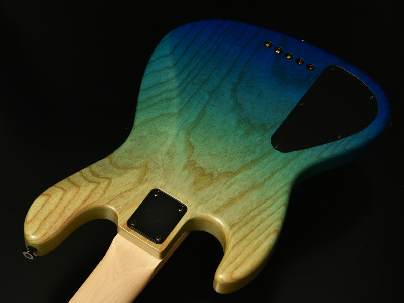 Burl Maple:ボディトップには「バールメイプル」を採用。杢目を活かすブルーグラデーションカラーで仕上げました。指板には希少価値の高いバーズアイメイプルを採用。鳥の目のような細かく渦巻状になった杢目が特徴です。