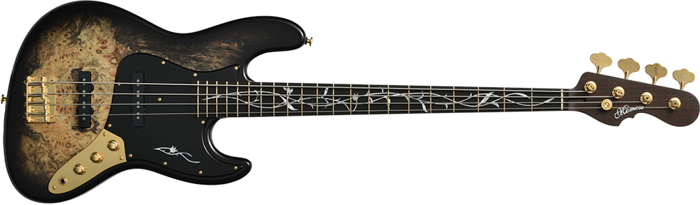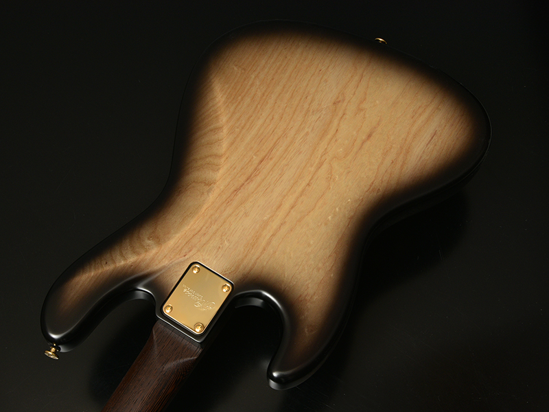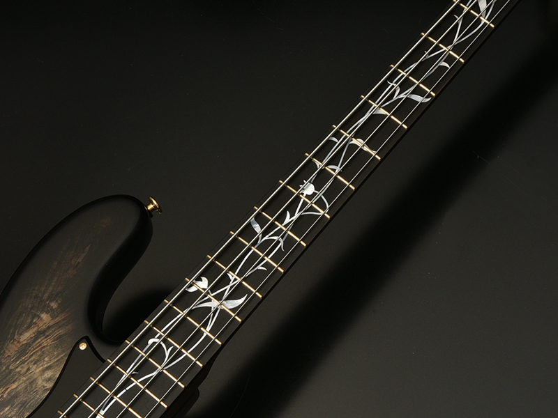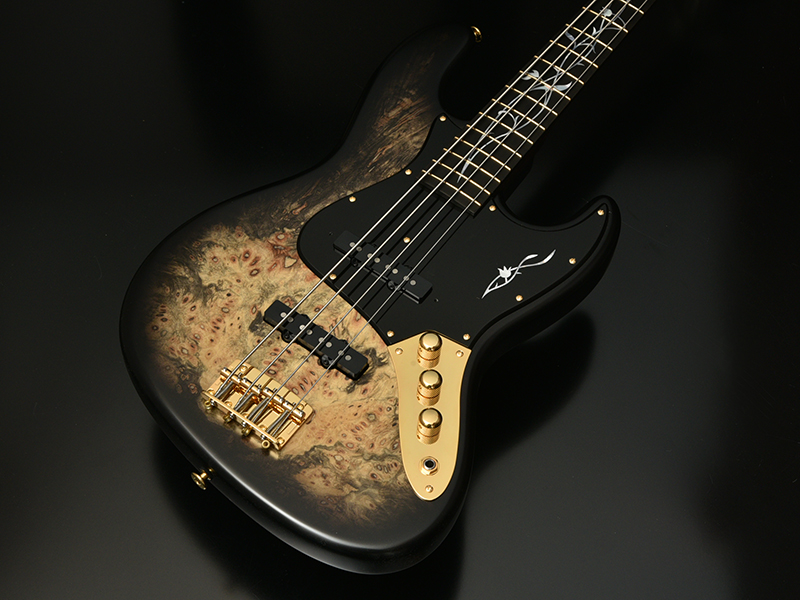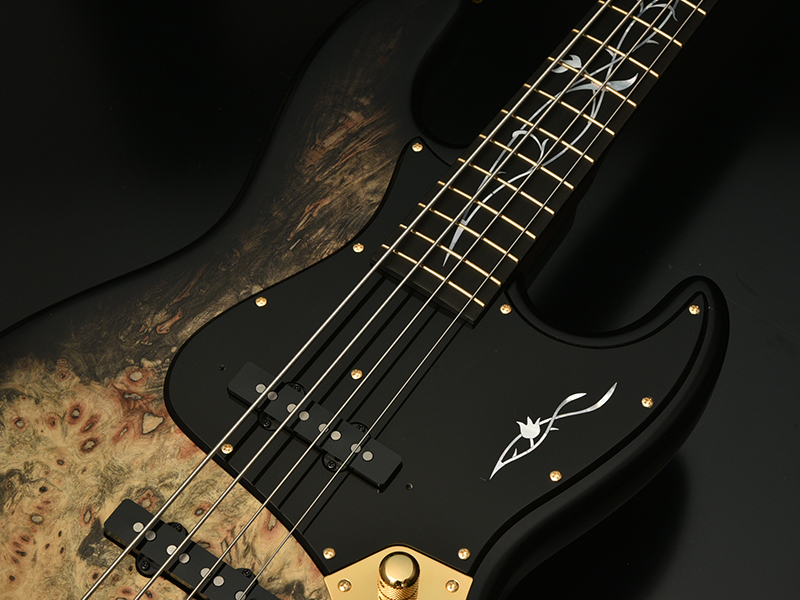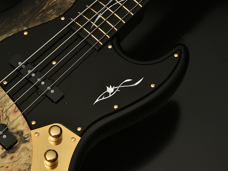 Buckeye Burl:ボディトップにエキゾチックウッド「バックアイバール」を採用しました。瘤(バール)を持った西洋のトチノキ数種の総称で「Buck=雄ジカの eye=目」の意味を持ちます。鹿の目のような大きめのバール杢を有し、その迫力ある外観は魅力的で美しい仕上がりになります。カラーはブラックバーストで仕上げました。