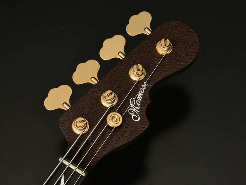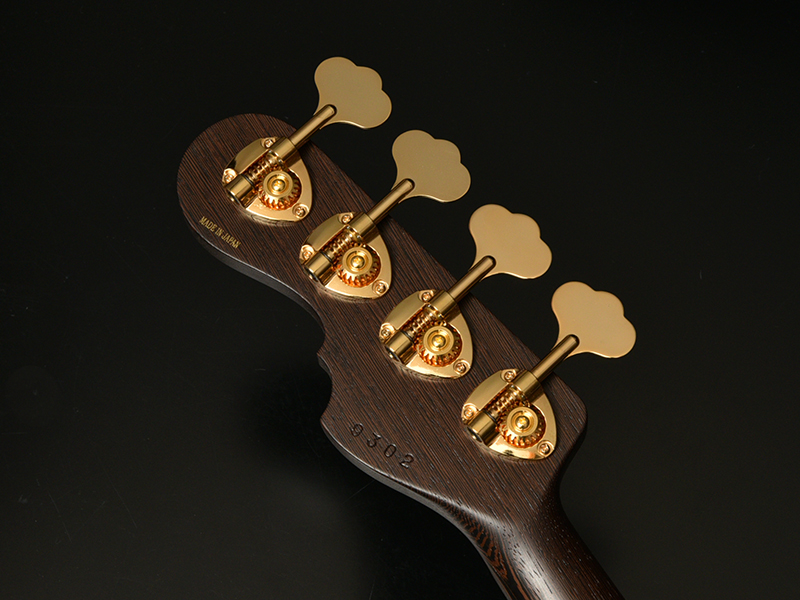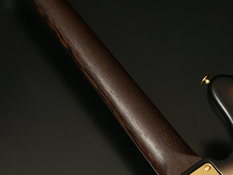 Wenge:ネックに使用されているWengeは、リップルマークとよばれるさざ波のような木目が特徴的なアフリカ産の木材です。肌目は粗いが大変強度が高く、硬いことから特異な木材として知られています。その音は硬さはなく、重厚感や存在感のある中低音域に魅力を感じます。