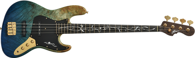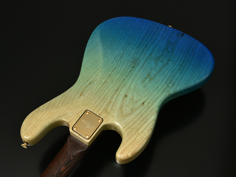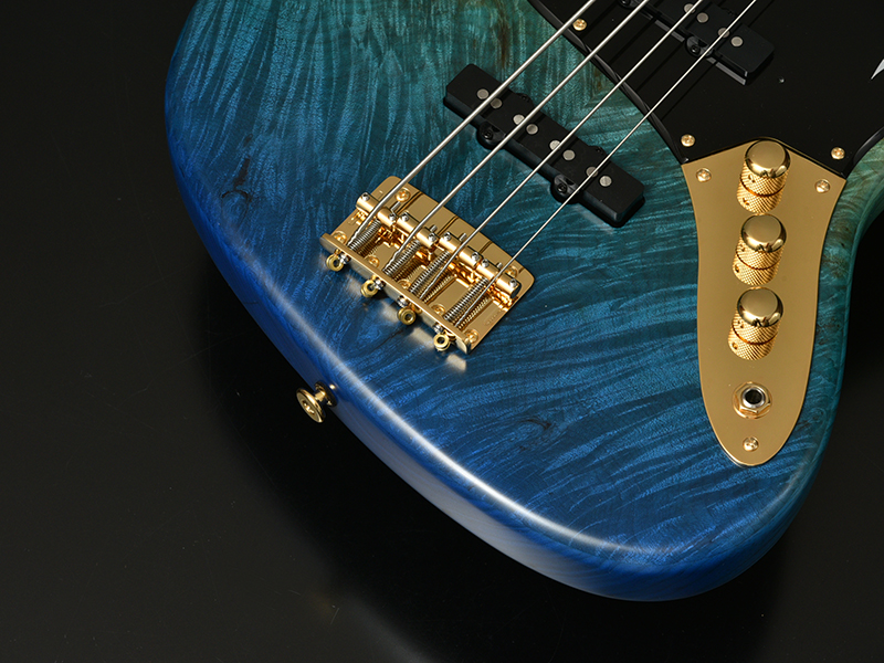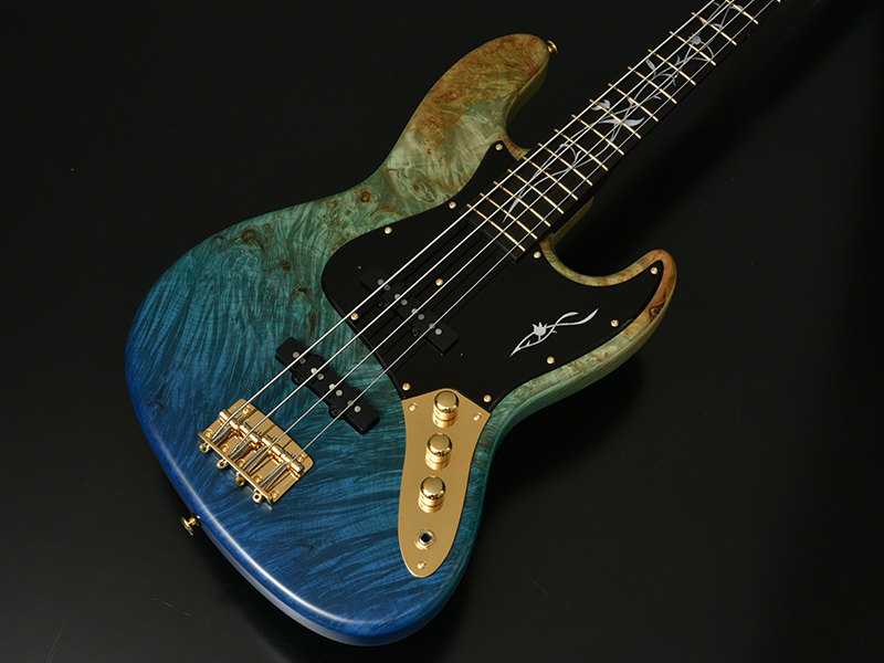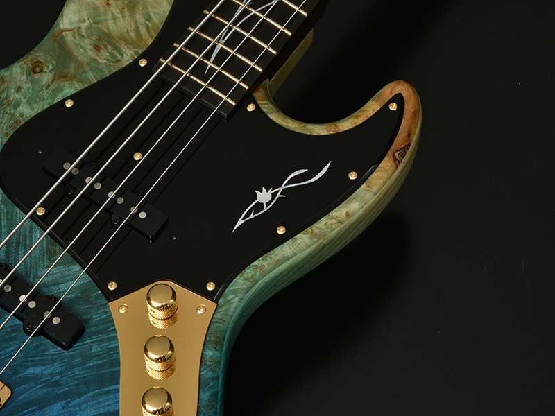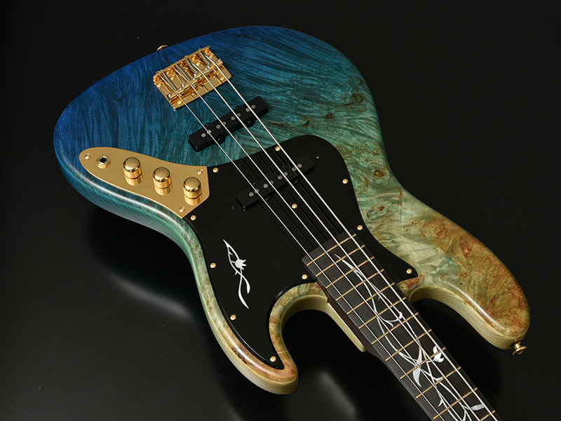 Burl Maple:バール杢とは木の根元などに出来た心材組織とは異なる中にできる模様を指します。自然が作り出す複雑な瘤模様ができる要因や過程などは、判明していなことも多いようです。細かく入ったバール杢を活かす2色のグラデーションカラーを採用。鮮やかなブルーが美しい1本です。