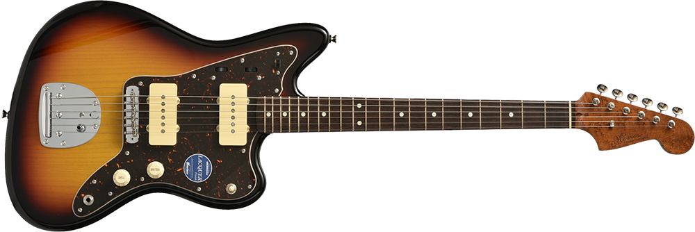 Thermo Birdseye Maple:ネックにバーズアイメイプルを採用した特別モデル。丸い玉のような模様が連なったり、渦巻状になって現われる杢目で、鳥の目に似た模様が集まっているところから“鳥目杢”(とりめもく)と呼ばれています。サーモウッド加工を施し、ヴィンテージサウンドを再現しました。