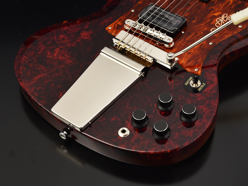 BURL MAPLE:バール杢とは木の根元などに出来た心材組織とは異なる中にできる模様を指します。自然が作り出す複雑な瘤模様ができる要因や過程などは、判明していなことも多いようです。メイプル材の場合には様々な杢が見て取れ、うっすらとしたインパクトの薄いものから、ハイエンドギターに使用されるようなバール杢が細かく出た迫力のあるものまで多様に存在します。