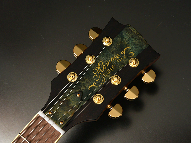 Camphor:ボディトップにはカンファーを採用しました。日本名で「楠(クスノキ)」と呼ばれています。防虫剤の樟脳(しょうのう)がこの木の成分から採れることもあり、箪笥の引き出しや衣裳箱の素材に用いられることもあったといいます。優しい木肌の色合いに合うようホワイトバーストで仕上げています。トップ材とバック材をハーフ&ハーフの割合で贅沢に使用しています。