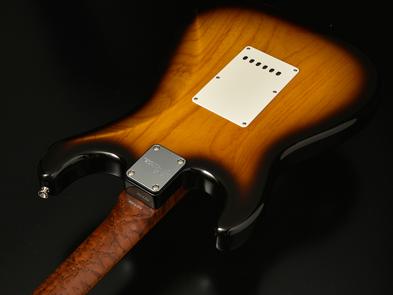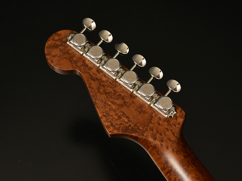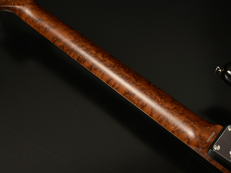 Thermo Birdseye Maple:ネックにバーズアイメイプルを採用した特別モデル。丸い玉のような模様が連なったり、渦巻状になって現われる杢目で、鳥の目に似た模様が集まっているところから“鳥目杢”(とりめもく)と呼ばれています。サーモウッド加工を施し、ヴィンテージサウンドを再現しました。