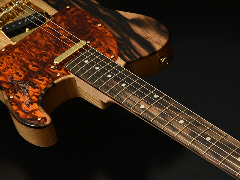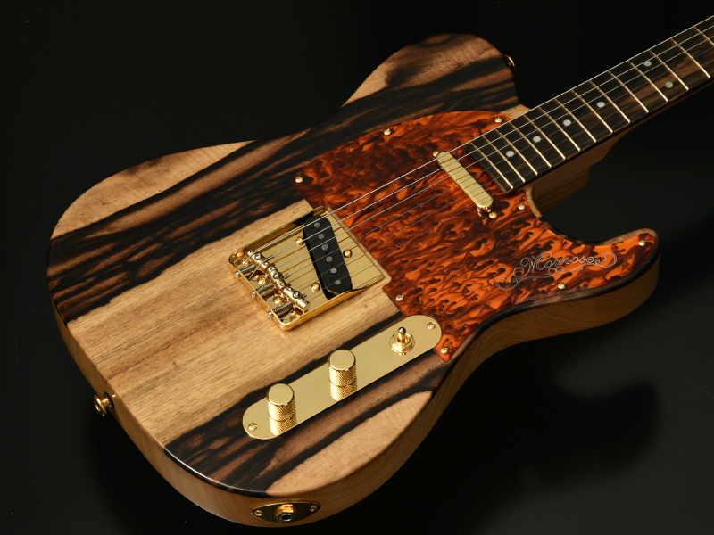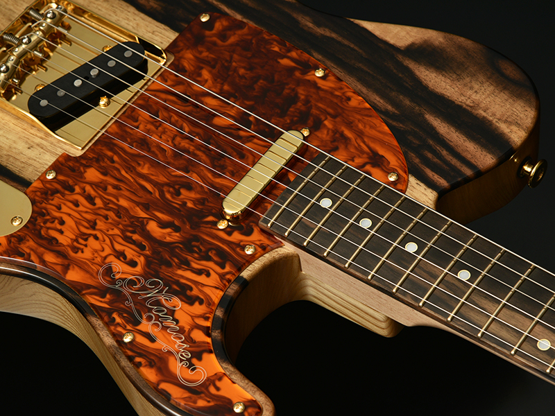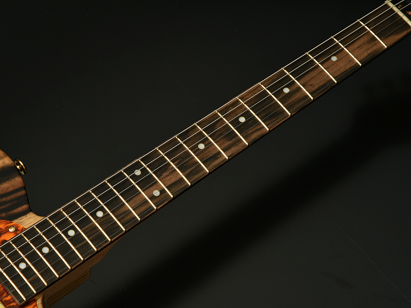 Kaede × Kurogaki:ネックには楓材を採用し、指板には日本の銘木"黒柿"を採用いたしました。目の詰まった淡紅褐色の楓材と、黒色の縞模様が美しい黒柿材がマッチした、希少価値の高いモデルです。日本の材を使用したプレミアムモデルを是非お試しください。