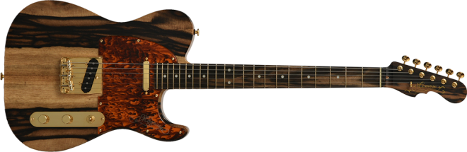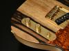 Kurogaki:ボディトップには日本の銘木"黒柿"を採用。水墨画のような紋様は、日本古来より庶民から公家や武家まで、多くの人々が魅了されたといわれています。 「黒柿」とよばれるものは、柿の古木の数万本に一本に現れるとされ、その希少性と美しさから、あらゆる工芸品の中でも最高級に位置するものに使用される「銘木中の銘木」とも呼び声高い希少木材です。