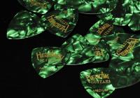 HEADWAYアクセサリーにセルロース素材のピックが新登場しました。形はオニギリ型、厚みはMEDIUMにて製作いたしました。ゴージャスな印象を与えるグリーンパールにHEADWAYの金色ロゴが目を引く個性的なピックに仕上がりました。広く普及しているセルロース素材のピックで、手に馴染みやすく、軽快なコードストロークに最適のピックです。